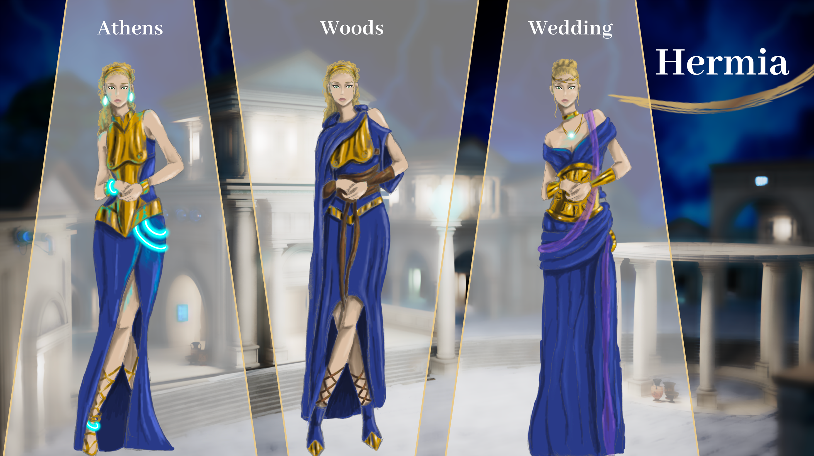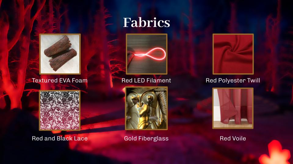 This version of Midsummer is set in an original post-apocalyptic world that highlights the sexist, classist, and homophobic issues in the unaltered script, with an additional commentary on climate change. The Athenian costumes use color, texture, and light to indicate class, silhouette to imply sexuality, and the placement of gold to indicate the value of each character based on their gender and marital status. The fairies’ costumes use silhouette, texture, and light to assign blame for their current unnatural state of being.