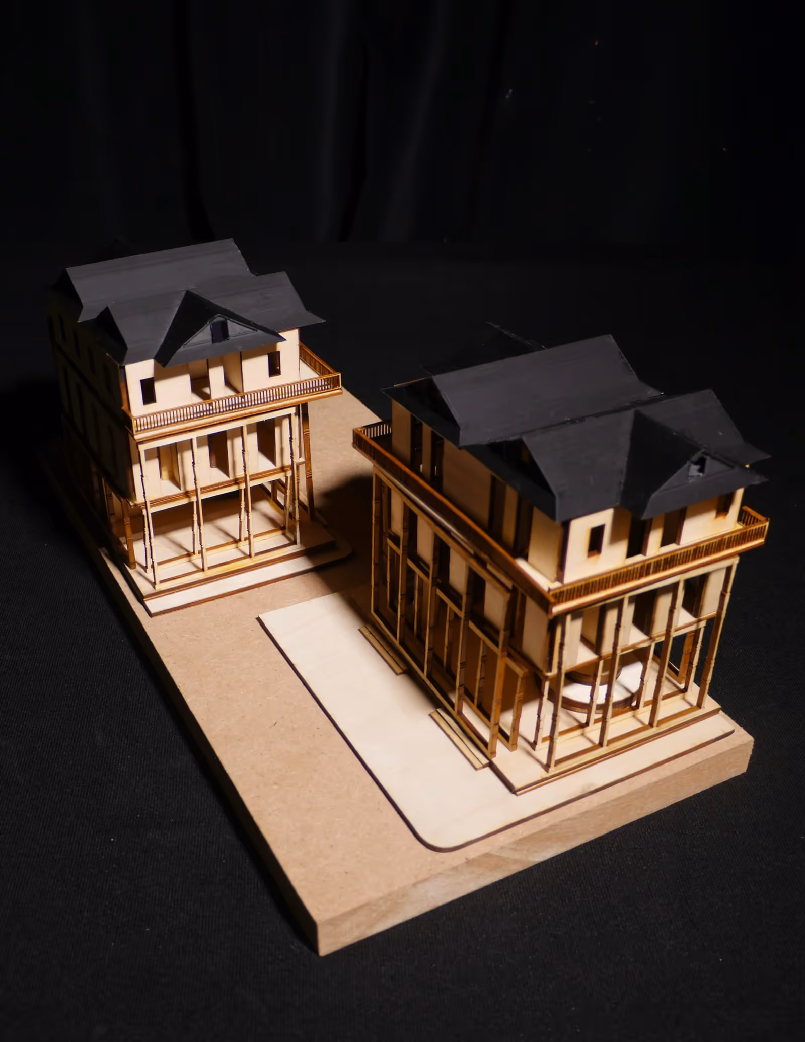 A scale model of a residential and gallery space designed for a New Orleans neighborhood.