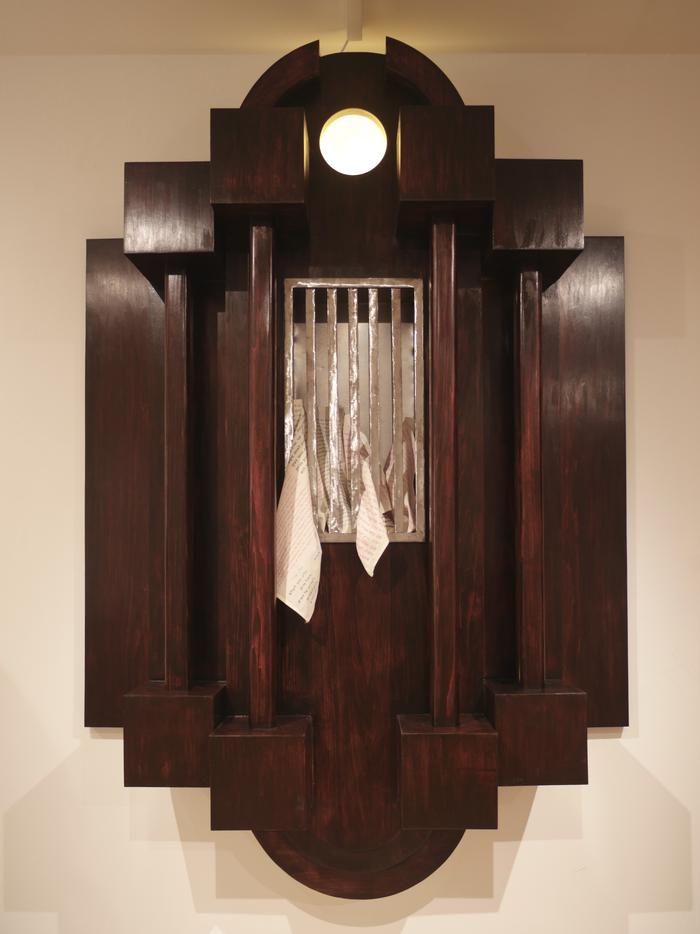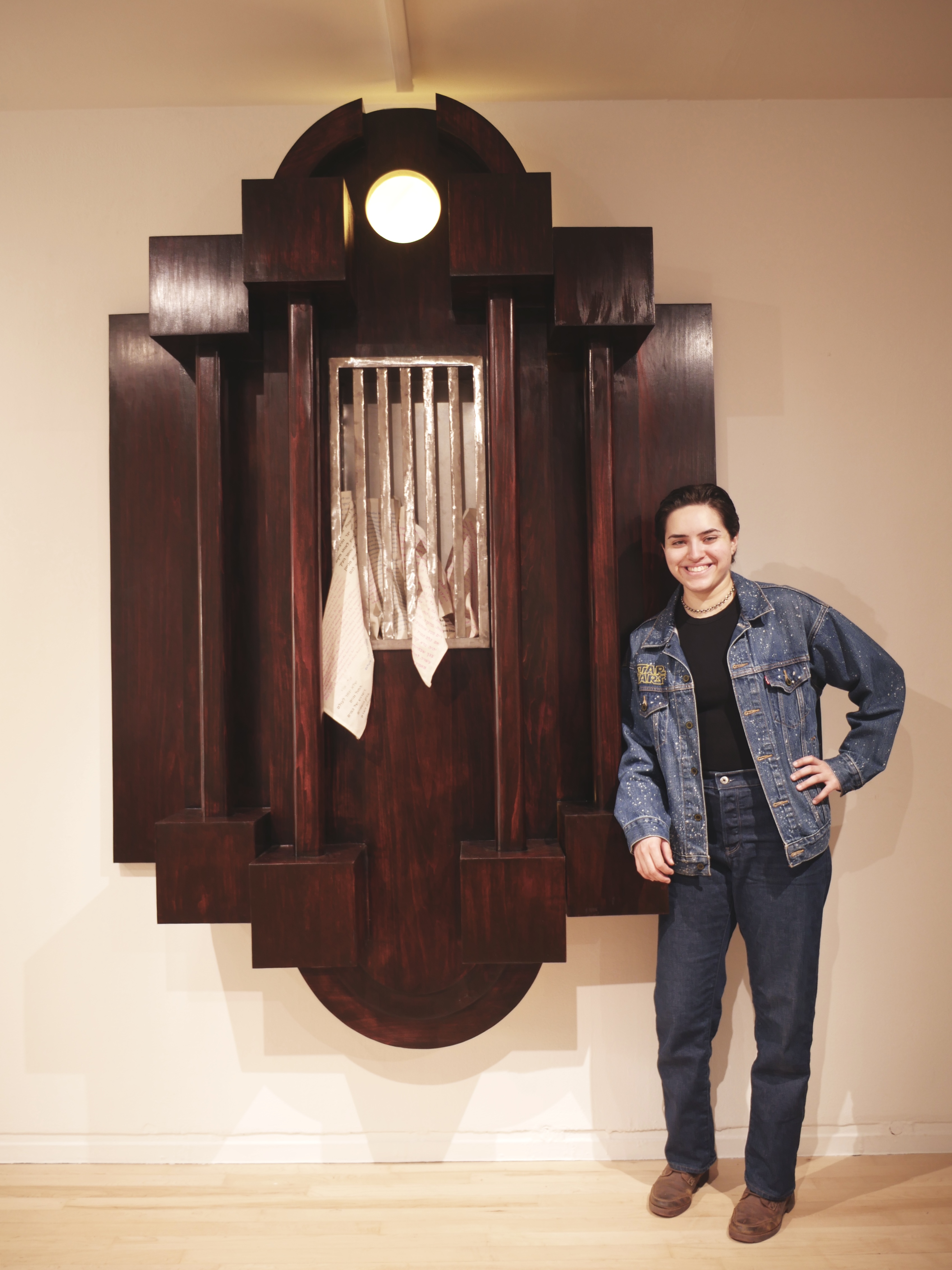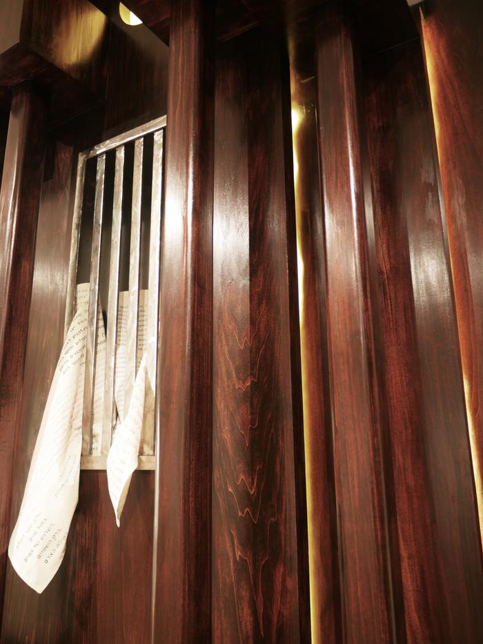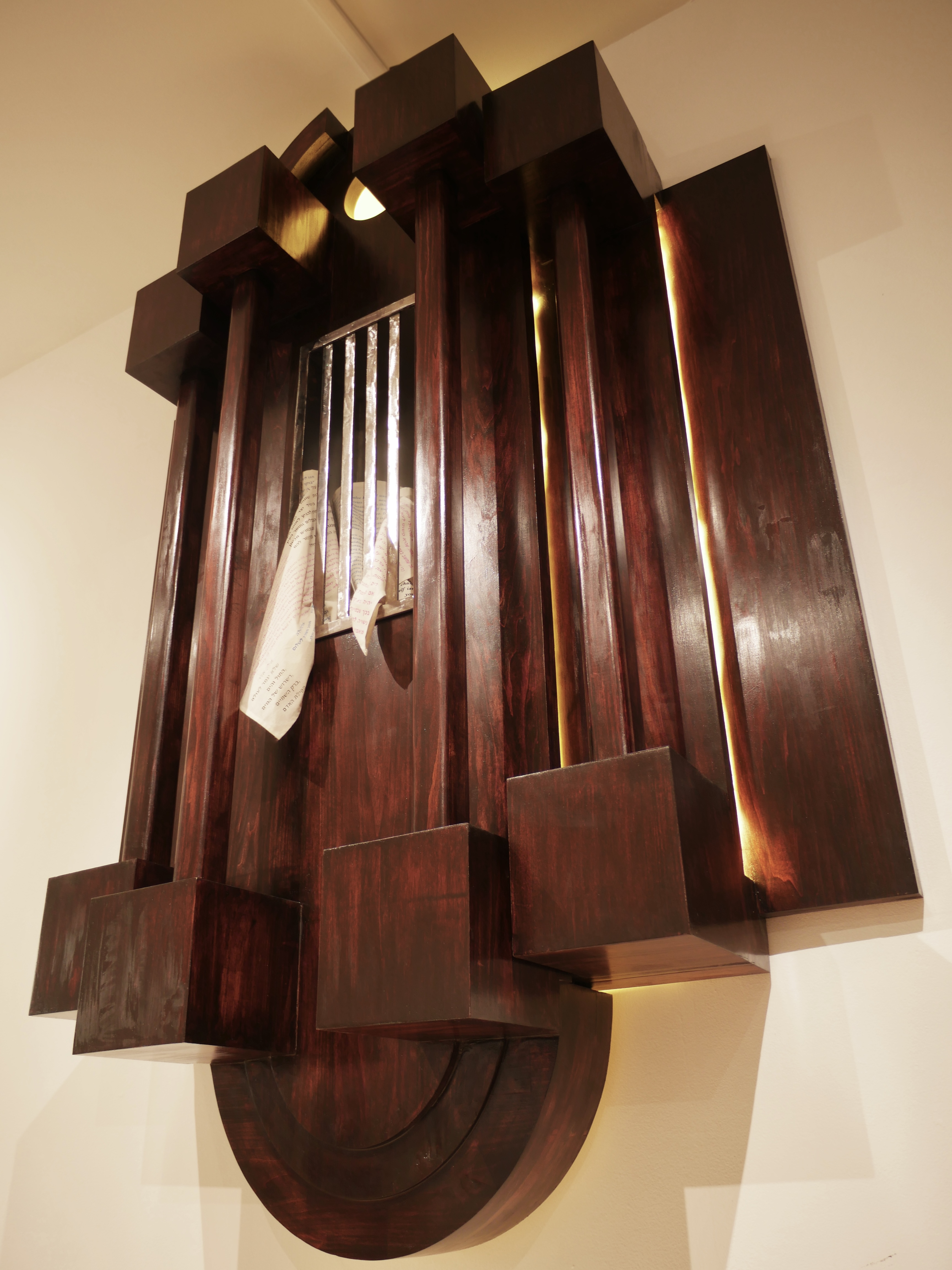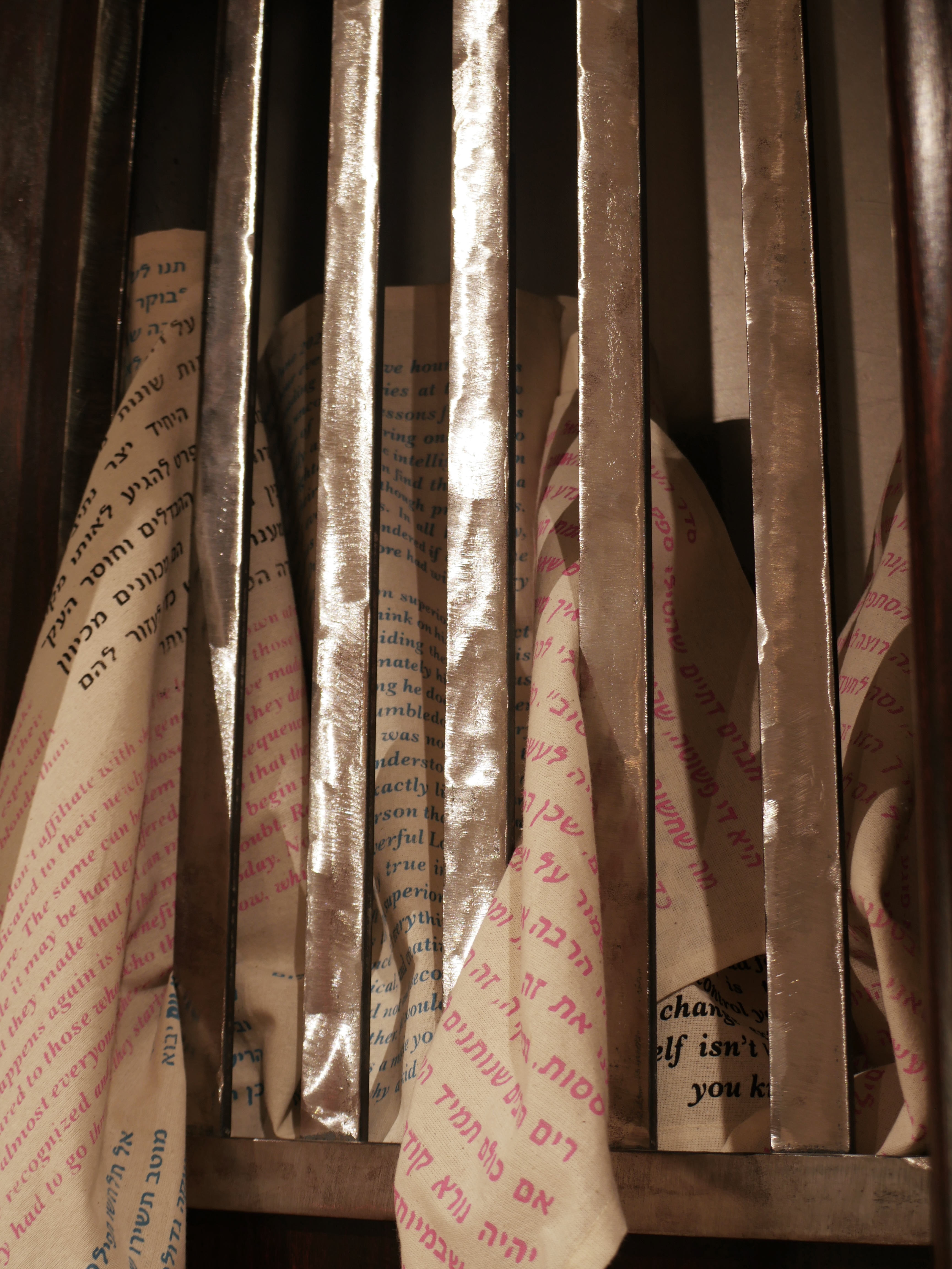 This closet is a solid and imposing facade of steel and wood shaped by generations of tradition that harbors and hides the amalgamation of defining beliefs and values both aligned and in conflict with the Jewish and Queer communities. But as solid as the closet needs to be, the tighter the core of this person is restrained, the more they yearn for release.